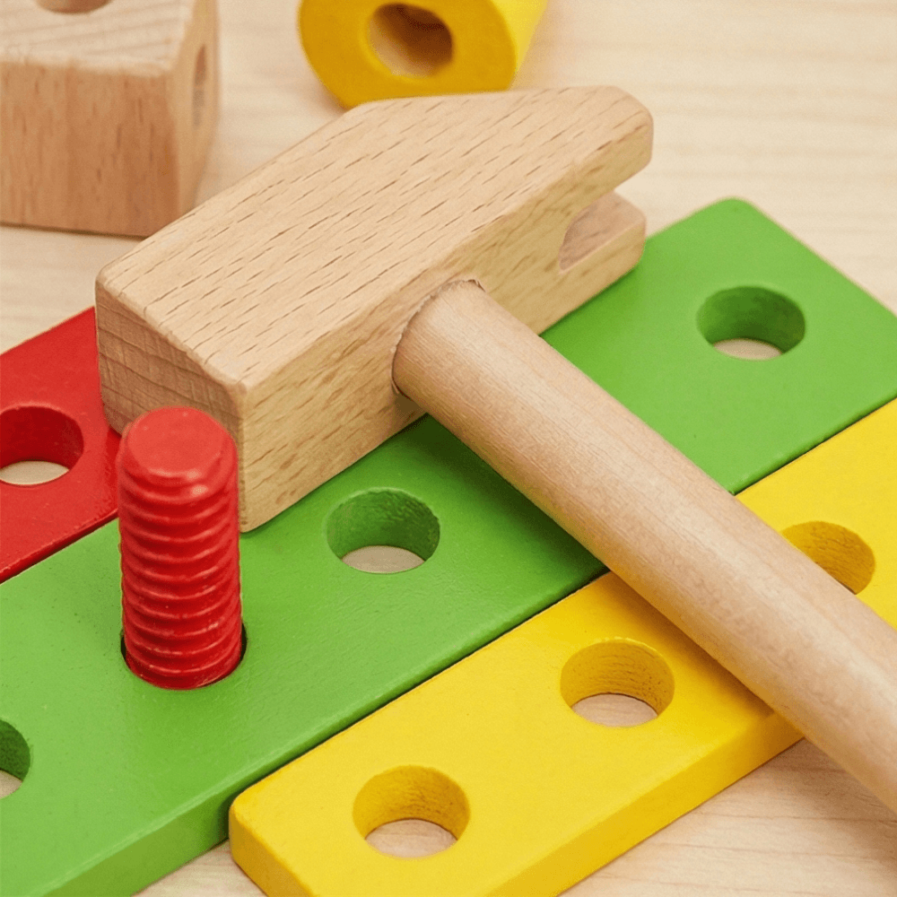 يُعد صندوق أدوات خشبي للأطفال مجموعة تعليمية متكاملة صُممت لتعريف الأطفال فوق سن 3 سنوات بمهارات الدقة والتركيب، بعيداً عن مخاطر الأدوات الحقيقية.