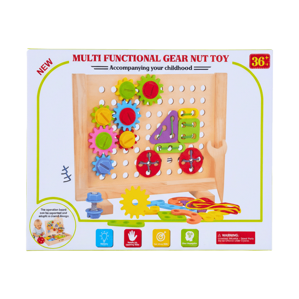 أكتر من مجرد لعبة، لحظة مشاركة: رافقوا طفلكم في اكتشاف آليات المنطق. عملية تركيب وفك البراغي (اللولب) الملونة ماشي غير تسلية؛ بل هي ضرورية لتقوية عضلات الأصابع. هاد الحركة الدقيقة هي نفسها اللي كيحتاجها الطفل من بعد باش يشد الستيلو أو يسد صداف حوايجو. لعبة المسننات التعليمية كتشمل أيضاً أنشطة التمرير (الخياطة)، فين كيتوجب على الطفل يدوز خيط في لوحات مثقوبة، وهادشي كيزيد من الصبر والتنسيق بين العين واليد بطريقة ممتعة.