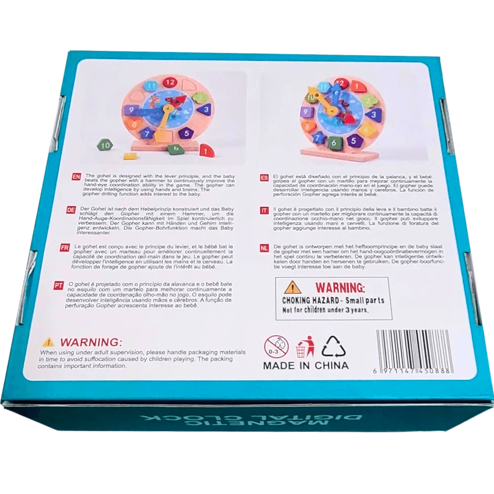 En résumé, l’Horloge Numérique Magnétique en Bois n’est pas seulement un jouet : c’est un véritable outil pédagogique pour stimuler le développement intellectuel, la motricité et la compréhension du temps chez les jeunes enfants. Offrez-leur la possibilité d’apprendre tout en s’amusant et de découvrir le plaisir de comprendre l’heure de manière interactive et colorée.